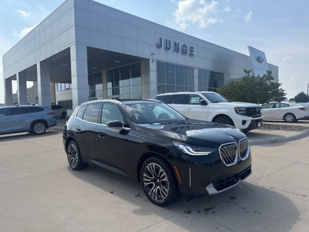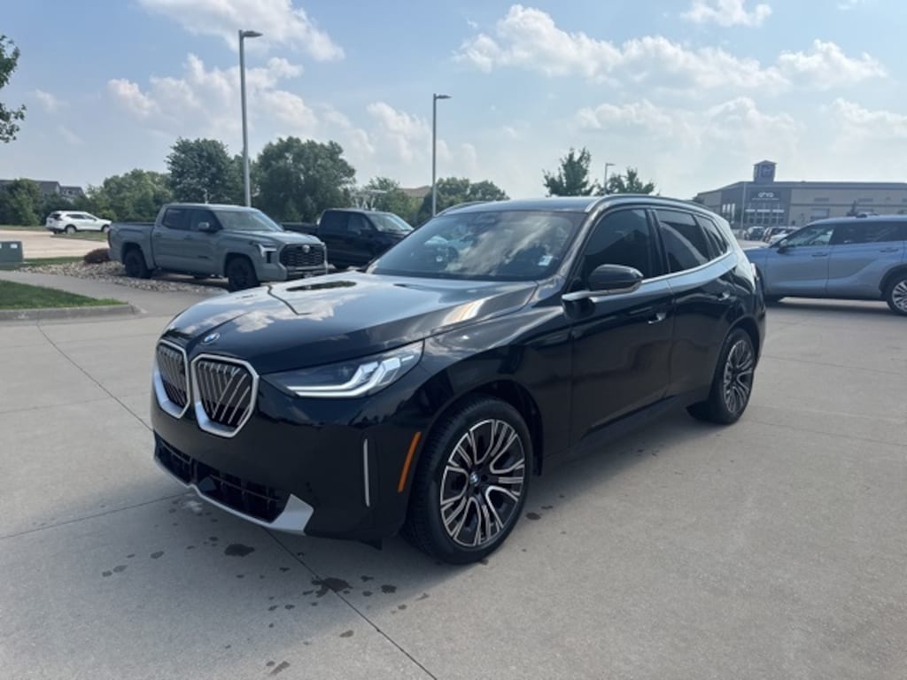2025 Black Sapphire Metallic BMW X3 **NAVIGATION/GPS**, **LEATHER**, TIBBFX, **AWD**, 8-Speed Automatic, 12 Speakers, 4-Wheel Disc Brakes, ABS brakes, ACC Stop & Go + Active Driving Assistant, Active Driving Assistant Pro, Air Conditioning, Alloy wheels, AM/FM Radio, AM/FM radio: SiriusXM, Apple CarPlay & Android Auto Compatibility, Auto High-beam Headlights, Auto-dimming door mirrors, Auto-dimming Rear-View mirror, Automatic temperature control, BMW Assist eCall, BMW Curved Display w/HUD, BMW Iconic Glow Kidney Grille, BMW TeleServices, Brake assist, Bumpers: body-color, Delay-off headlights, Driver door bin, Driver vanity mirror, Driving Assistance Professional Package, Dual front impact airbags, Dual front side impact airbags, Electronic Stability Control, Emergency communication system: BMW Assist eCall, Exterior Parking Camera Rear, Four wheel independent suspension, Front & Rear Heated Seats, Front anti-roll bar, Front Bucket Seats, Front Center Armrest, Front dual zone A/C, Front reading lights, Front Ventilated Seats, Fully automatic headlights, Garage door transmitter, harman/kardon Surround Sound System, Heated door mirrors, Heated Front Seats, Heated front seats, Heated Steering Wheel, Hi-Fi Sound System, Illuminated entry, Interior Camera, Knee airbag, Low tire pressure warning, Memory seat, Navigation, Navigation system: BMW Maps Navigation, Occupant sensing airbag, Outside temperature display, Overhead airbag, Overhead console, Panic alarm, Parking Assistant Plus, Passenger door bin, Passenger vanity mirror, Personal eSIM 5G, Power door mirrors, Power driver seat, Power Front Seats, Power Liftgate, Power passenger seat, Power steering, Power windows, Premium Content 1, Premium Package, Radio data system, Rain sensing wipers, Rear anti-roll bar, Rear Climate Control Console, Rear reading lights, Rear seat center armrest, Rear window defroster, Rear window wiper, Remote Engine Start, Remote keyless entry, Security system, SiriusXM Satellite Radio w/1 Year Subscription, Sky Lounge Panoramic Roof, Speed control, Speed-Sensitive Wipers, Split folding rear seat, Spoiler, Sport Seats, Sport steering wheel, Steering wheel mounted audio controls, Tachometer, Telescoping steering wheel, Tilt steering wheel, Traction control, Trailer Hitch, Travel & Comfort System, Trip computer, Turn signal indicator mirrors, Variably intermittent wipers, Veganza Perforated & Quilted Upholstery, Wheels: 19" x 8.5" Aero Midnight Grey Bicolor, Wheels: 20" x 9.0" Fr & 20" x 10.5" Rr Bicolor, Wireless Device Charging, 8-Speed Automatic.