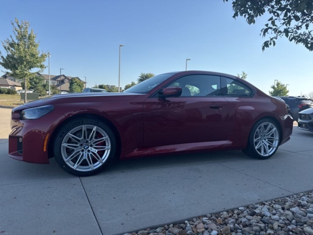 2025 Vegas Red Metallic BMW M2 Adaptive Full LED Lights, Automatic High Beams, Connected Package Pro, Lighting Package, Navigation, Navigation System, 4-Wheel Disc Brakes, ABS brakes, Adaptive suspension, Air Conditioning, Alloy wheels, AM/FM radio: SiriusXM, AM/FM Stereo, Apple CarPlay & Android Auto Compatibility, Auto-dimming door mirrors, Auto-dimming Rear-View mirror, Automatic temperature control, BMW Assist eCall, BMW TeleServices, Brake assist, Bumpers: body-color, Carbon Fiber Trim, ConnectedDrive Services, Delay-off headlights, Driver door bin, Driver vanity mirror, Dual front impact airbags, Dual front side impact airbags, Electronic Stability Control, Emergency communication system: BMW Assist eCall, Exterior Parking Camera Rear, Four wheel independent suspension, Front anti-roll bar, Front Bucket Seats, Front Center Armrest, Front dual zone A/C, Front reading lights, Fully automatic headlights, Garage door transmitter, Hands-Free Bluetooth & USB Audio Connection, harman/kardon Surround Sound System, harman/kardon® Speakers, Head restraints memory, Heated door mirrors, Heated Front Seats, Heated front seats, Heated Steering Wheel, Illuminated entry, Leather Shift Knob, Live Cockpit Pro w/Head-Up Display, Low tire pressure warning, Lumbar Support, M Compound Brakes w/Red Calipers, M Shadowline Lights, M Sport Seats, Memory seat, Occupant sensing airbag, Outside temperature display, Overhead airbag, Panic alarm, Passenger door bin, Passenger vanity mirror, Personal eSIM 5G, Power adjustable front head restraints, Power door mirrors, Power driver seat, Power Front Seats, Power moonroof, Power passenger seat, Power steering, Power windows, Radio data system, Rain sensing wipers, Rear air conditioning, Rear anti-roll bar, Rear seat center armrest, Rear window defroster, Remote keyless entry, Security system, SiriusXM w/360L, Speed control, Speed-sensing steering, Speed-Sensitive Wipers, Split folding rear seat, Spoiler, Sport steering wheel, Steering wheel mounted audio controls, Tachometer, Telescoping steering wheel, Tilt steering wheel, Traction control, Trip computer, Turn signal indicator mirrors, Variably intermittent wipers, Vernasca Leather Upholstery, Wheels: 19" x 9.5" Fr & 20" x 10.5" Rr Black, Wheels: 19" x 9.5" Fr & 20" x 10.5" Rr Silver, Widescreen Display, Wireless Device Charging, Adaptive Full LED Lights, Automatic High Beams, Connected Package Pro, Lighting Package, Navigation, Navigation System.