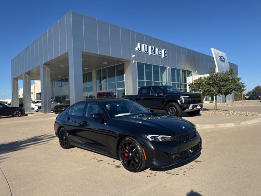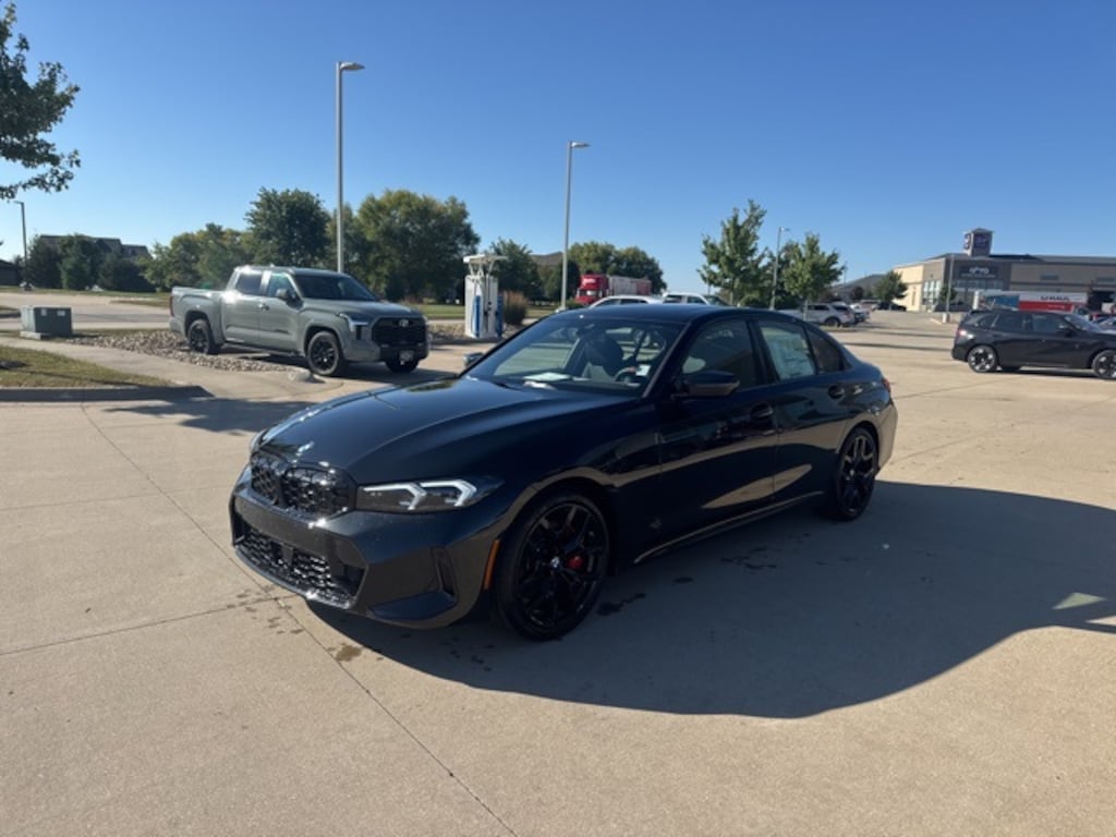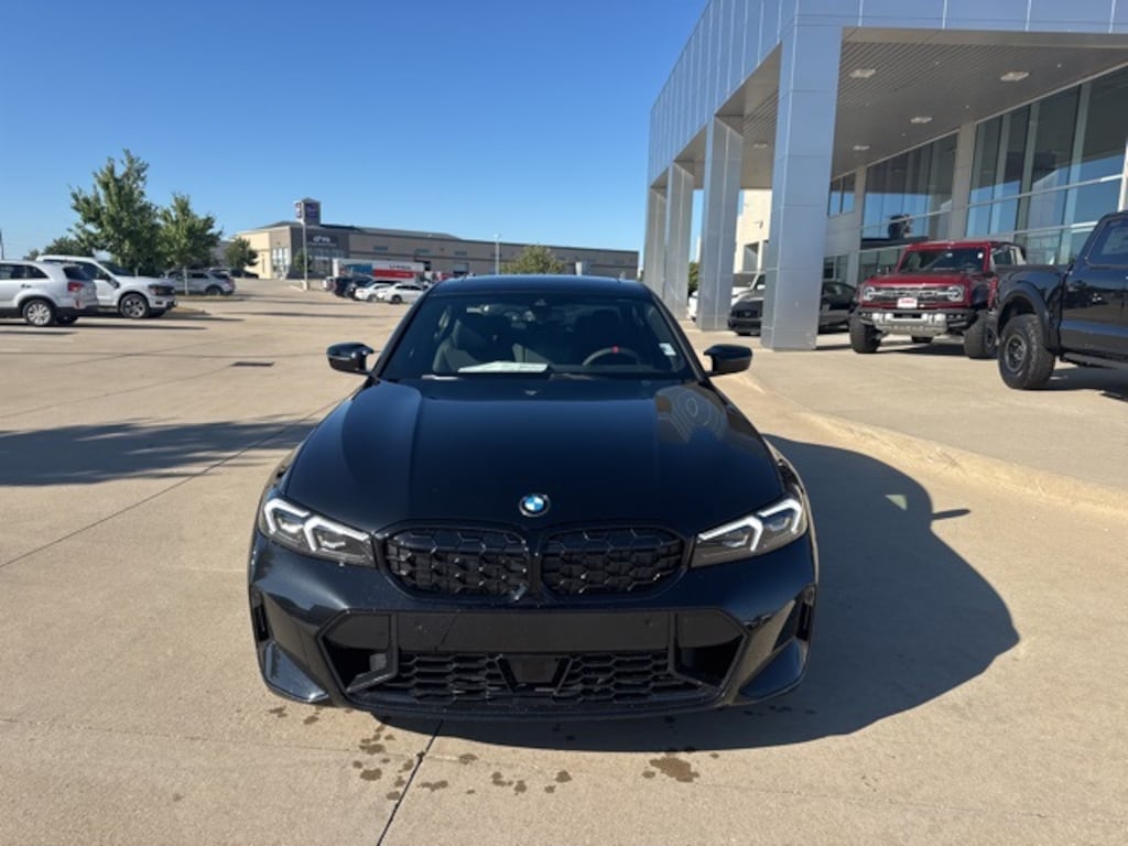 2025 Black Sapphire Metallic BMW 3 Series *SUNROOF/MOONROOF*, **NAVIGATION/GPS**, **LEATHER**, **AWD**, AWD, Connected Package Pro, Driving Assistance Package, Extended Shadowline Trim, Full LED Headlights w/Cornering Lights, M Shadowline Lights, M Sport Package Pro, Navigation, Navigation System, Shadowline Package, 10 Speakers, 4-Wheel Disc Brakes, ABS brakes, Active Cruise Control, Air Conditioning, Alloy wheels, AM/FM radio: SiriusXM, Apple CarPlay & Android Auto Compatibility, Auto High-beam Headlights, Auto-dimming door mirrors, Auto-dimming Rear-View mirror, Automatic temperature control, BMW Assist eCall, BMW TeleServices, Brake assist, Bumpers: body-color, Carbon Fiber Trim, Compass, ConnectedDrive Services, Delay-off headlights, Driver door bin, Driver vanity mirror, Dual front impact airbags, Dual front side impact airbags, Electronic Stability Control, Emergency communication system: BMW Assist eCall, Exterior Parking Camera Rear, Four wheel independent suspension, Front anti-roll bar, Front Bucket Seats, Front Center Armrest, Front dual zone A/C, Front reading lights, Fully automatic headlights, Garage door transmitter, Heated door mirrors, Heated Front Seats, Heated front seats, Heated steering wheel, Hi-Fi Sound System, Illuminated entry, Knee airbag, Leather steering wheel, Low tire pressure warning, Lumbar Support, Memory seat, Occupant sensing airbag, Outside temperature display, Overhead airbag, Panic alarm, Passenger door bin, Passenger vanity mirror, Perforated Sensatec Upholstery, Personal eSIM 5G, Power door mirrors, Power driver seat, Power Front Seats, Power moonroof, Power passenger seat, Power steering, Power windows, Radio data system, Radio: AM/FM Audio System, Rain sensing wipers, Rear air conditioning, Rear anti-roll bar, Rear reading lights, Rear seat center armrest, Rear window defroster, Remote keyless entry, Security system, SiriusXM Satellite Radio w/1 Year Subscription, Speed control, Speed-sensing steering, Speed-Sensitive Wipers, Split folding rear seat, Spoiler, Sport Seats, Sport steering wheel, Steering wheel mounted audio controls, Tachometer, Telescoping steering wheel, Tilt steering wheel, Traction control, Trip computer, Turn signal indicator mirrors, Variably intermittent wipers, Wheels: 19" x 8.0" M Dual-Spoke Bicolor, Wheels: 19" x 8" M Dual-Spoke Jet Black, Widescreen Display, Wireless Device Charging, AWD, Connected Package Pro, Driving Assistance Package, Extended Shadowline Trim, Full LED Headlights w/Cornering Lights, M Shadowline Lights, M Sport Package Pro, Navigation, Navigation System, Shadowline Package.