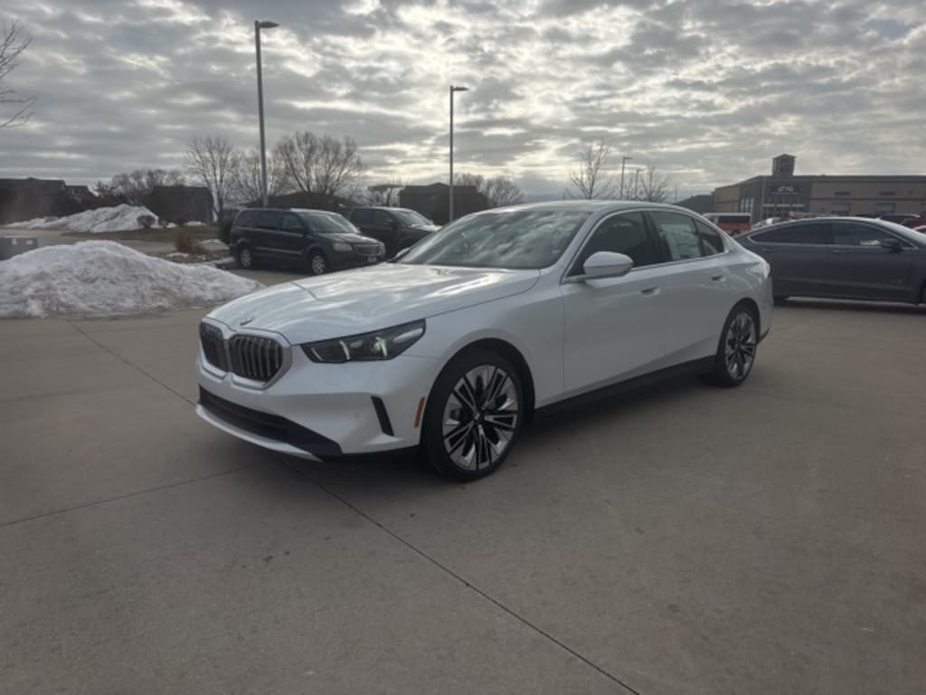 2026 Mineral White Metallic BMW 5 Series *SUNROOF/MOONROOF*, **NAVIGATION/GPS**, **LEATHER**, **AWD**, AWD, Black w/Perforated & Quilted Veganza Upholstery, BMW Curved Display w/HUD, Connected Package Pro, Heated Steering Wheel, Interior Camera, Navigation, Navigation System, Parking Assistant Plus, Parking View w/3D View (Surround View), Premium Content 1, Premium Package, Remote Engine Start, 12 Speakers, 4-Wheel Disc Brakes, 4-Zone Automatic Climate Control, 48V Mild Hybrid System, ABS brakes, Air Conditioning, Alloy wheels, AM/FM radio: SiriusXM with 360L, Apple CarPlay & Android Auto Compatibility, Auto tilt-away steering wheel, Auto-dimming door mirrors, Auto-dimming Rear-View mirror, Automatic temperature control, BMW Assist eCall, BMW Iconic Glow Kidney Grille, BMW TeleServices, Brake assist, Bumpers: body-color, ConnectedDrive Services, Delay-off headlights, Distance Control (ACC) w/Steering Assistant, Driver door bin, Driver vanity mirror, Driving Assistant Plus, Dual front impact airbags, Dual front side impact airbags, Electronic Stability Control, Emergency communication system: BMW Assist eCall, Exterior Parking Camera Rear, Four wheel independent suspension, Front & Rear Heated Seats, Front anti-roll bar, Front Bucket Seats, Front Center Armrest, Front dual zone A/C, Front reading lights, Fully automatic headlights, Garage door transmitter, Genuine wood dashboard insert, Genuine wood door panel insert, harman/kardon® Logic 7® Digital Surround, harman/kardon® Speakers, Head restraints memory, Heated door mirrors, Heated Front Seats, Heated front seats, Illuminated entry, Leather steering wheel, Low tire pressure warning, Lumbar Support, Memory seat, Occupant sensing airbag, Outside temperature display, Overhead airbag, Panic alarm, Passenger door bin, Passenger vanity mirror, Perforated & Quilted Veganza Upholstery, Personal eSIM 5G, Power adjustable front head restraints, Power door mirrors, Power driver seat, Power Front Seats, Power moonroof, Power passenger seat, Power steering, Power windows, Radio data system, Radio: AM/FM Audio System, Rain sensing wipers, Rear anti-roll bar, Rear reading lights, Rear seat center armrest, Rear window defroster, Remote keyless entry, Security system, SiriusXM w/360L & 1 Year Trial Subscription, Speed control, Speed-sensing steering, Speed-Sensitive Wipers, Split folding rear seat, Sport Seats, Steering wheel memory, Steering wheel mounted audio controls, Tachometer, Telescoping steering wheel, Tilt steering wheel, Traction control, Trip computer, Turn signal indicator mirrors, Variably intermittent wipers, Wheels: 19" x 8.5" Aero Bicolor Grey, Wheels: 20" x 8.5" Fr & 20" x 10.0" Rr Aero Silver, Wireless Device Charging, AWD, Black w/Perforated & Quilted Veganza Upholstery, BMW Curved Display w/HUD, Connected Package Pro, Heated Steering Wheel, Interior Camera, Navigation, Navigation System, Parking Assistant Plus, Parking View w/3D View (Surround View), Premium Content 1, Premium Package, Remote Engine Start.