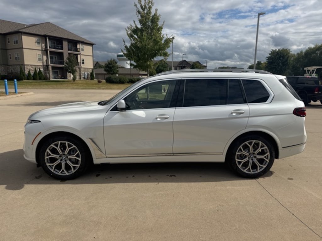 2026 Mineral White Metallic BMW X7 *SUNROOF/MOONROOF*, **NAVIGATION/GPS**, **LEATHER**, **AWD**, 10 Speakers, 2nd Row Captain's Chairs, 3rd row seats: split-bench, 4-Wheel Disc Brakes, 5-Zone Automatic Climate Control, ABS brakes, Adaptive suspension, Air Conditioning, Alloy wheels, AM/FM radio: SiriusXM with 360L, AM/FM Stereo, Apple CarPlay & Android Auto Compatibility, Apple CarPlay Compatibility, Auto High-beam Headlights, Auto tilt-away steering wheel, Auto-dimming door mirrors, Auto-dimming Rear-View mirror, Auto-leveling suspension, Automatic temperature control, BMW Assist eCall, BMW TeleServices, Brake assist, Bumpers: body-color, Climate Comfort Package, Compass, Connected Package Pro, ConnectedDrive Services, Delay-off headlights, Distance Control (ACC) w/Steering Assistant, Driver door bin, Driver vanity mirror, Driving Assistance Professional Package, Driving Assistant Professional, Dual front impact airbags, Dual front side impact airbags, Electric Rear Side Window Shades, Electronic Stability Control, Emergency communication system: BMW Assist eCall, Exterior Parking Camera Rear, Four wheel independent suspension, Front & Rear Heated Seats, Front anti-roll bar, Front Bucket Seats, Front Center Armrest, Front dual zone A/C, Front reading lights, Front Ventilated Seats, Fully automatic headlights, Garage door transmitter, Genuine wood console insert, Genuine wood dashboard insert, Genuine wood door panel insert, harman/kardon Surround Sound System, Head restraints memory, Heads-Up Display, Heated door mirrors, Heated front seats, Heated Multi-Contour Seats, Heated steering wheel, Hi-Fi Sound System, Illuminated entry, Knee airbag, Lane Change Assistant, Leather steering wheel, Limited Term Highway Assistant, Live Cockpit Pro, Low tire pressure warning, Memory seat, Navigation system: BMW Maps Navigation, Occupant sensing airbag, Outside temperature display, Overhead airbag, Panic alarm, Partial Automated Driving, Passenger door bin, Passenger vanity mirror, Personal eSIM 5G, Power adjustable front head restraints, Power door mirrors, Power driver seat, Power Front Seats, Power moonroof, Power passenger seat, Power steering, Power windows, Premium Package, Radio data system, Rain sensing wipers, Rear air conditioning, Rear anti-roll bar, Rear dual zone A/C, Rear reading lights, Rear seat center armrest, Rear window defroster, Rear window wiper, Reclining 3rd row seat, Remote keyless entry, Security system, Sensafin Upholstery w/Decor Stitching, SiriusXM w/360L & 1 Year Trial Subscription, Soft-Close Automatic Doors, Speed control, Speed-sensing steering, Speed-Sensitive Wipers, Split folding rear seat, Spoiler, Sport steering wheel, Steering wheel memory, Steering wheel mounted audio controls, Tachometer, Telescoping steering wheel, Tilt steering wheel, Traction control, Trailer Hitch, Trip computer, Turn signal indicator mirrors, Variably intermittent wipers, Wheels: 21" x 9.5" Y-Spoke Bicolor (1XL), Wireless Charging Device, 10 Speakers, 2nd Row Captain's Chairs, 3rd row seats: split-bench, 4-Wheel Disc Brakes, 5-Zone Automatic Climate Control, ABS brakes, Adaptive suspension, Air Conditioning, Alloy wheels, AM/FM radio: SiriusXM with 360L, AM/FM Stereo, Apple CarPlay & Android Auto Compatibility, Apple CarPlay Compatibility, Auto High-beam Headlights, Auto tilt-away steering wheel, Auto-dimming door mirrors, Auto-dimming Rear-View mirror, Auto-leveling suspension, Automatic temperature control, BMW Assist eCall, BMW TeleServices, Brake assist, Bumpers: body-color, Climate Comfort Package, Compass, Connected Package Pro, ConnectedDrive Services, Delay-off headlights, Distance Control (ACC) w/Steering Assistant, Driver door bin, Driver vanity mirror, Driving Assistance Professional Package, Driving Assistant Professional, Dual front impact airbags, Dual front side impact airbags, Electric Rear Side Window Shades, Electronic Stability Control, Emergency communication system: BMW Assist eCall, Exterior Parking C