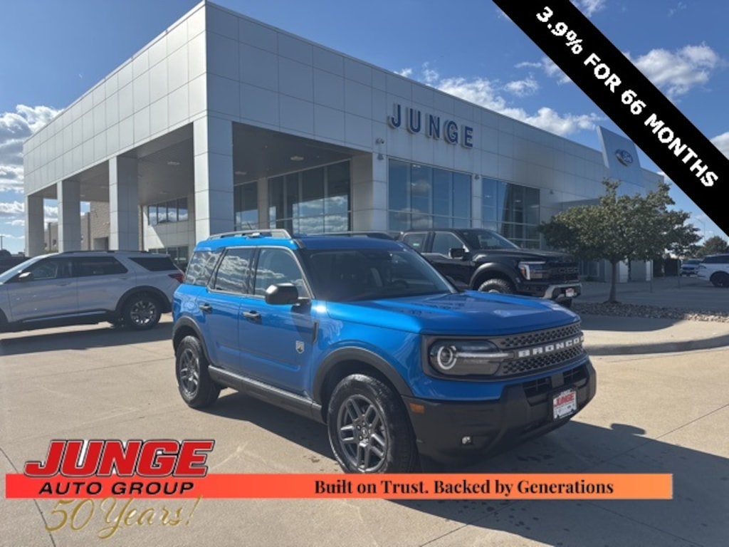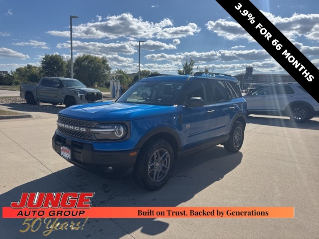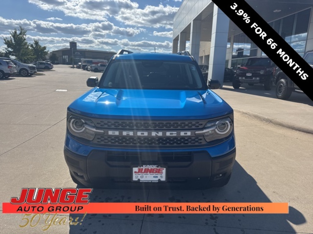 2025 Velocity Blue Metallic Ford Bronco Sport **4WD**, 4-Wheel Disc Brakes, 6 Speakers, ABS brakes, Air Conditioning, Alloy wheels, AM/FM radio: SiriusXM, AM/FM Stereo, Auto High-beam Headlights, Automatic temperature control, Brake assist, Cloth w/Easy-to-Clean Front Bucket Seats, Compass, Convenience Package, Delay-off headlights, Driver door bin, Driver vanity mirror, Dual front impact airbags, Dual front side impact airbags, Electronic Stability Control, Emergency communication system: SYNC 4 911 Assist, Equipment Group 200A, Four wheel independent suspension, Front anti-roll bar, Front Bucket Seats, Front Center Armrest, Front Driver/Passenger Seat Back Map Pockets, Front License Plate Bracket, Front reading lights, Fully automatic headlights, Heated 8-Way Power Driver's Seat, Heated door mirrors, Illuminated entry, Knee airbag, LED Fog Lamps, Low tire pressure warning, Occupant sensing airbag, Outside temperature display, Overhead airbag, Overhead console, Panic alarm, Passenger door bin, Passenger vanity mirror, Power door mirrors, Power steering, Power windows, Premium Wrapped Steering Wheel, Radio data system, Rear anti-roll bar, Rear Parking Sensors, Rear reading lights, Rear seat center armrest, Rear window defroster, Rear window wiper, Remote keyless entry, Security system, SiriusXM, Speed control, Speed-sensing steering, Speed-Sensitive Wipers, Split folding rear seat, Steering wheel mounted audio controls, SYNC 4 w/Enhanced Voice Recognition, Tachometer, Telescoping steering wheel, Tilt steering wheel, Traction control, Trip computer, Universal Garage Door Opener (UGDO), Variably intermittent wipers, Wheels: 17" Carbonized Gray-Painted Aluminum, 4-Wheel Disc Brakes, 6 Speakers, ABS brakes, Air Conditioning, Alloy wheels, AM/FM radio: SiriusXM, AM/FM Stereo, Auto High-beam Headlights, Automatic temperature control, Brake assist, Cloth w/Easy-to-Clean Front Bucket Seats, Compass, Convenience Package, Delay-off headlights, Driver door bin, Driver vanity mirror, Dual front impact airbags, Dual front side impact airbags, Electronic Stability Control, Emergency communication system: SYNC 4 911 Assist, Equipment Group 200A, Four wheel independent suspension, Front anti-roll bar, Front Bucket Seats, Front Center Armrest, Front Driver/Passenger Seat Back Map Pockets, Front License Plate Bracket, Front reading lights, Fully automatic headlights, Heated 8-Way Power Driver's Seat, Heated door mirrors, Illuminated entry, Knee airbag, LED Fog Lamps, Low tire pressure warning, Occupant sensing airbag, Outside temperature display, Overhead airbag, Overhead console, Panic alarm, Passenger door bin, Passenger vanity mirror, Power door mirrors, Power steering, Power windows, Premium Wrapped Steering Wheel, Radio data system, Rear anti-roll bar, Rear Parking Sensors, Rear reading lights, Rear seat center armrest, Rear window defroster, Rear window wiper, Remote keyless entry, Security system, SiriusXM, Speed control, Speed-sensing steering, Speed-Sensitive Wipers, Split folding rear seat, Steering wheel mounted audio controls, SYNC 4 w/Enhanced Voice Recognition, Tachometer, Telescoping steering wheel, Tilt steering wheel, Traction control, Trip computer, Universal Garage Door Opener (UGDO), Variably intermittent wipers, Wheels: 17" Carbonized Gray-Painted Aluminum.