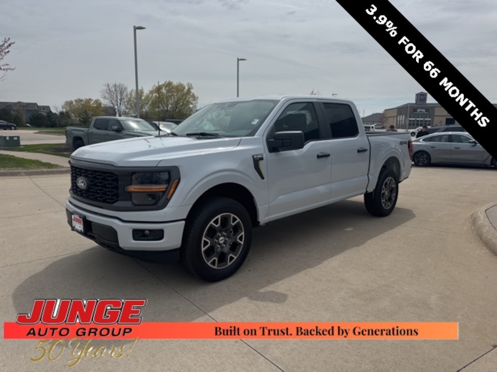 2025 Space White Metallic Ford F-150 **CREW CAB**, **4WD**, 4WD, 3.55 Axle Ratio, 4-Wheel Disc Brakes, 6 Speakers, ABS brakes, Air Conditioning, Alloy wheels, Auto High-beam Headlights, Brake assist, Bumpers: body-color, Compass, Delay-off headlights, Driver door bin, Dual front impact airbags, Dual front side impact airbags, Electronic Stability Control, Emergency communication system: SYNC 4 911 Assist, Equipment Group 200A Mid, Front anti-roll bar, Front Bucket Seats, Front Center Armrest, Front License Plate Bracket, Front reading lights, Front wheel independent suspension, Fully automatic headlights, GVWR: 6,650 lbs Payload Package, Heated door mirrors, Illuminated entry, LED Fog Lamps w/LED Cornering Lamp, Low tire pressure warning, Occupant sensing airbag, Outside temperature display, Overhead airbag, Overhead console, Panic alarm, Passenger door bin, Passenger vanity mirror, Power door mirrors, Power steering, Power windows, Radio data system, Rear Parking Sensors, Rear step bumper, Rear window defroster, Remote keyless entry, Security system, Speed control, Split folding rear seat, Steering wheel mounted audio controls, SYNC 4 w/Enhanced Voice Recognition, Tachometer, Telescoping steering wheel, Tilt steering wheel, Traction control, Trip computer, Unique Sport Cloth 40/Console/40 Front-Seats, Variably intermittent wipers, Voltmeter, Wheels: 20" Dark Gray w/Machined Aluminum.