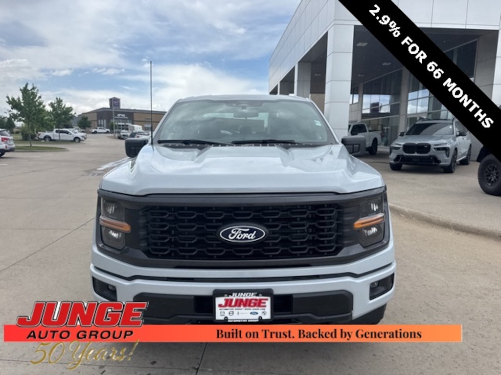 2025 Space White Metallic Ford F-150 4WD, 3.55 Axle Ratio, 4-Wheel Disc Brakes, 6 Speakers, ABS brakes, Air Conditioning, Alloy wheels, Auto High-beam Headlights, Brake assist, Bumpers: body-color, Compass, Delay-off headlights, Driver door bin, Dual front impact airbags, Dual front side impact airbags, Electronic Stability Control, Emergency communication system: SYNC 4 911 Assist, Front anti-roll bar, Front Bucket Seats, Front Center Armrest, Front License Plate Bracket, Front reading lights, Front wheel independent suspension, Fully automatic headlights, GVWR: 6,550 lbs Payload Package, Heated door mirrors, Illuminated entry, Low tire pressure warning, Occupant sensing airbag, Outside temperature display, Overhead airbag, Overhead console, Panic alarm, Passenger door bin, Passenger vanity mirror, Power door mirrors, Power steering, Power windows, Radio data system, Rear Parking Sensors, Rear step bumper, Rear window defroster, Remote keyless entry, Security system, Speed control, Split folding rear seat, Steering wheel mounted audio controls, SYNC 4 w/Enhanced Voice Recognition, Tachometer, Telescoping steering wheel, Tilt steering wheel, Traction control, Trip computer, Unique Sport Cloth 40/Console/40 Front-Seats, Variably intermittent wipers, Voltmeter, Wheels: 18" Gloss Black, 4WD.