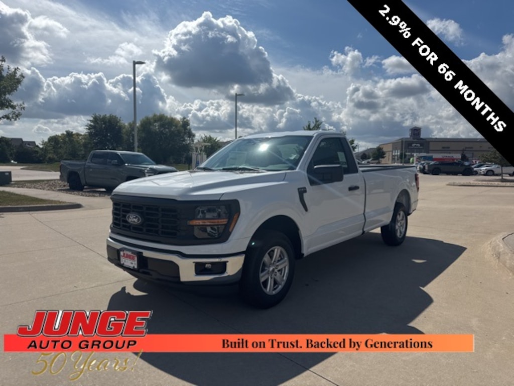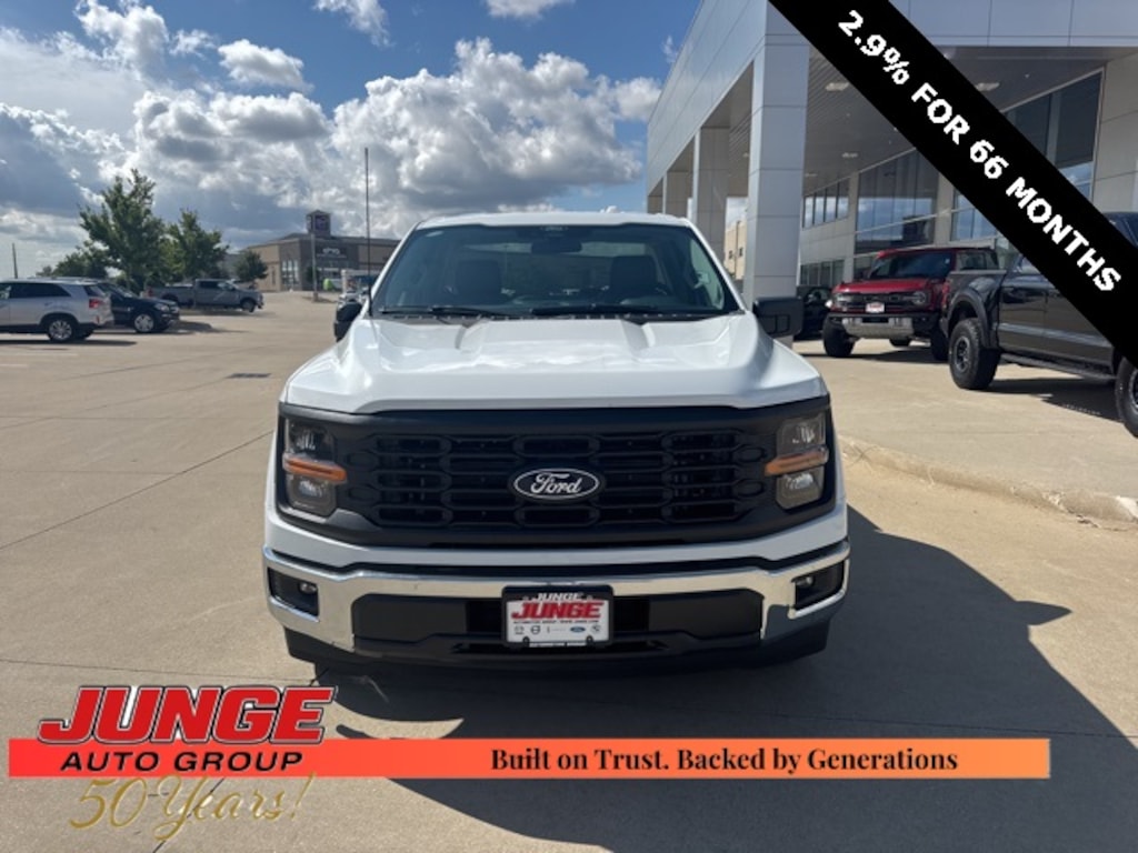 2025 Oxford White Ford F-150 Chrome Bumpers, Equipment Group 103A High, GVWR: 6,220 lb Payload Package, Interior Work Surfaces, LED Fog Lamps, Rear Window Fixed Privacy Glass w/Defroster, Wheels: 17" Silver Painted Aluminum, 3.55 Axle Ratio, 4 Speakers, 4-Wheel Disc Brakes, ABS brakes, Air Conditioning, AM/FM radio: SiriusXM with 360L, Auto High-beam Headlights, Brake assist, Cloth 40/20/40 Front Seat, Compass, Delay-off headlights, Driver door bin, Dual front impact airbags, Dual front side impact airbags, Electronic Stability Control, Emergency communication system: SYNC 4 911 Assist, Front anti-roll bar, Front Center Armrest, Front License Plate Bracket, Front reading lights, Front wheel independent suspension, Fully automatic headlights, Heated door mirrors, Illuminated entry, Low tire pressure warning, Occupant sensing airbag, Outside temperature display, Overhead airbag, Overhead console, Panic alarm, Passenger door bin, Passenger vanity mirror, Power door mirrors, Power steering, Power windows, Radio data system, Radio: AM/FM Stereo w/SiriusXM 360L, Rear Parking Sensors, Rear step bumper, Remote keyless entry, Security system, Speed control, Steering wheel mounted audio controls, SYNC 4 w/Enhanced Voice Recognition, Tachometer, Telescoping steering wheel, Tilt steering wheel, Traction control, Trip computer, Variably intermittent wipers, Vinyl 40/20/40 Front Seat, Voltmeter, Wheels: 17" Silver Steel, Chrome Bumpers, Equipment Group 103A High, GVWR: 6,220 lb Payload Package, Interior Work Surfaces, LED Fog Lamps, Rear Window Fixed Privacy Glass w/Defroster, Wheels: 17" Silver Painted Aluminum.