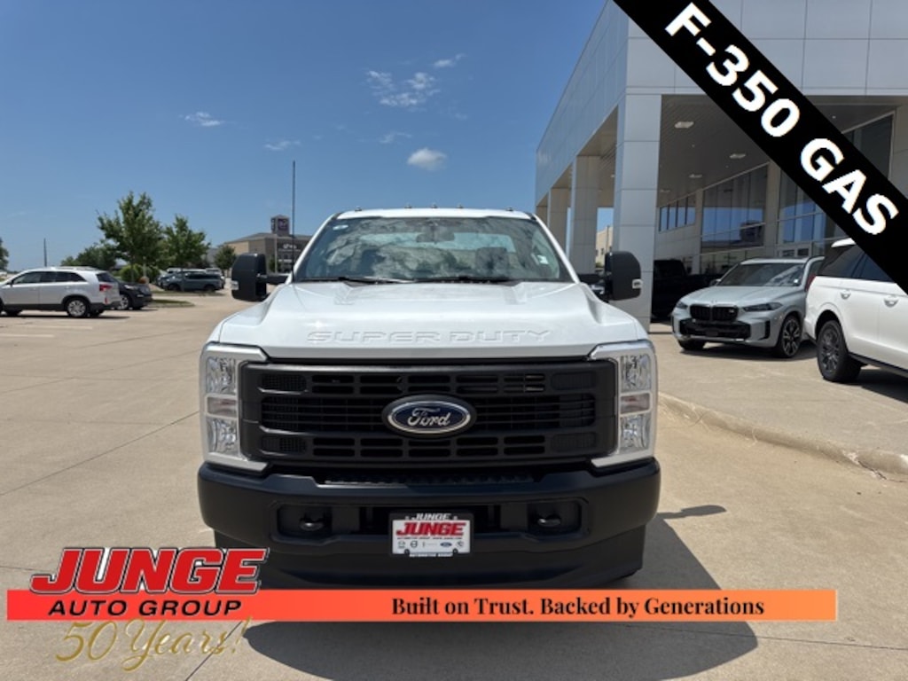 2025 Oxford White Ford F-350SD **4WD**, 4WD, 17" Argent Painted Steel Wheels, 190 Amp Alternator, 250 Amp Alternator, 4 Speakers, 4-Wheel Disc Brakes, ABS brakes, Air Conditioning, AM/FM radio, AM/FM Stereo w/MP3 Player, Brake assist, Compass, Delay-off headlights, Dual front impact airbags, Dual front side impact airbags, Dual rear wheels, Emergency communication system: SYNC 4 911 Assist, Front anti-roll bar, Front Center Armrest w/Storage, Front License Plate Bracket, Front reading lights, Fully automatic headlights, GVWR: 14,000 lb Payload Package, HD Vinyl 40/20/40 Split Bench Seat, Heated door mirrors, Illuminated entry, Limited Slip w/4.30 Axle Ratio, Low tire pressure warning, Order Code 640A, Outside temperature display, Overhead airbag, Overhead console, Panic alarm, Passenger cancellable airbag, Passenger vanity mirror, Power door mirrors, Power steering, Power windows, Rear anti-roll bar, Rear View Camera & Prep Kit, Remote keyless entry, Security system, Snow Plow Prep Package, Speed control, Steering wheel mounted audio controls, SYNC 4 Communication & Entertainment System, Tachometer, Telescoping steering wheel, Tilt steering wheel, Traction control, Trailer Brake Controller, Trip computer, Turn signal indicator mirrors, Variably intermittent wipers.