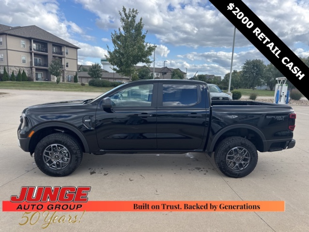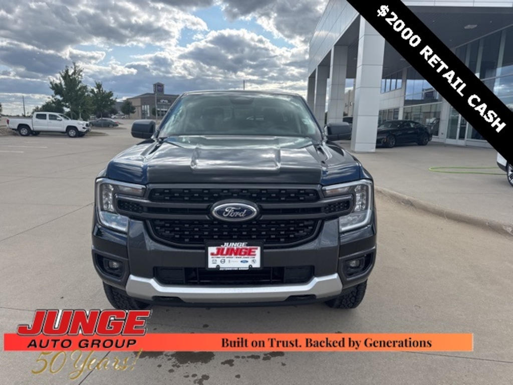 2025 Shadow Black Ford Ranger **NAVIGATION/GPS**, **CREW CAB**, **4WD**, 4WD, 12" Display in Center Stack, 3.73 Axle Ratio, 4-Wheel Disc Brakes, 6 Speakers, ABS brakes, Air Conditioning, Alloy wheels, AM/FM radio: SiriusXM, AM/FM Stereo, Auto High-beam Headlights, Auto-dimming Rear-View mirror, Brake assist, Cloth Front Bucket Seats, Cloth Front Heated Bucket Seats, Compass, Delay-off headlights, Driver door bin, Driver vanity mirror, Dual front impact airbags, Dual front side impact airbags, Dual-Zone Electronic Climate Control (DEATC), Electronic Stability Control, Emergency communication system: SYNC 4 911 Assist, Equipment Group 301A High, Front anti-roll bar, Front Bucket Seats, Front Center Armrest, Front fog lights, Front License Plate Bracket, Front reading lights, Front wheel independent suspension, Fully automatic headlights, Gray Painted Center Bar & Grille Surround, Gray Painted Front Fascia & Rear Bumper, Illuminated entry, Integrated Box Side Step, Leather Shift Knob, Low tire pressure warning, Navigation system: Connected Navigation, Occupant sensing airbag, Outside temperature display, Overhead airbag, Overhead console, Panic alarm, Passenger door bin, Passenger vanity mirror, Power door mirrors, Power steering, Power windows, Power-Sliding Rear Window, Rear reading lights, Rear seat center armrest, Rear step bumper, Rear window defroster, Remote keyless entry, Security system, SiriusXM Satellite Radio, Speed control, Speed-sensing steering, Sport Appearance Package, Sport Box Decal, Steering wheel mounted audio controls, SYNC 4A w/Connected Navigation, Telescoping steering wheel, Tilt steering wheel, Traction control, Trip computer, Variably intermittent wipers, Voltmeter, Wheels: 17" Gray-Painted Aluminum, 4WD, 12" Display in Center Stack, 3.73 Axle Ratio, 4-Wheel Disc Brakes, 6 Speakers, ABS brakes, Air Conditioning, Alloy wheels, AM/FM radio: SiriusXM, AM/FM Stereo, Auto High-beam Headlights, Auto-dimming Rear-View mirror, Brake assist, Cloth Front Bucket Seats, Cloth Front Heated Bucket Seats, Compass, Delay-off headlights, Driver door bin, Driver vanity mirror, Dual front impact airbags, Dual front side impact airbags, Dual-Zone Electronic Climate Control (DEATC), Electronic Stability Control, Emergency communication system: SYNC 4 911 Assist, Equipment Group 301A High, Front anti-roll bar, Front Bucket Seats, Front Center Armrest, Front fog lights, Front License Plate Bracket, Front reading lights, Front wheel independent suspension, Fully automatic headlights, Gray Painted Center Bar & Grille Surround, Gray Painted Front Fascia & Rear Bumper, Illuminated entry, Integrated Box Side Step, Leather Shift Knob, Low tire pressure warning, Navigation system: Connected Navigation, Occupant sensing airbag, Outside temperature display, Overhead airbag, Overhead console, Panic alarm, Passenger door bin, Passenger vanity mirror, Power door mirrors, Power steering, Power windows, Power-Sliding Rear Window, Rear reading lights, Rear seat center armrest, Rear step bumper, Rear window defroster, Remote keyless entry, Security system, SiriusXM Satellite Radio, Speed control, Speed-sensing steering, Sport Appearance Package, Sport Box Decal, Steering wheel mounted audio controls, SYNC 4A w/Connected Navigation, Telescoping steering wheel, Tilt steering wheel, Traction control, Trip computer, Variably intermittent wipers, Voltmeter, Wheels: 17" Gray-Painted Aluminum.