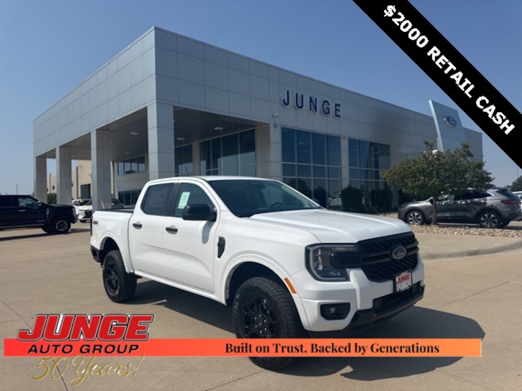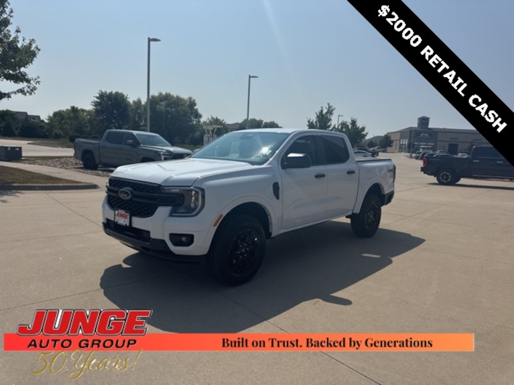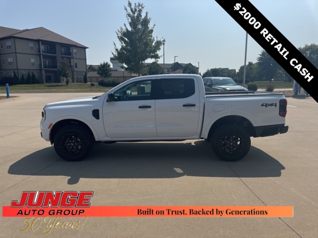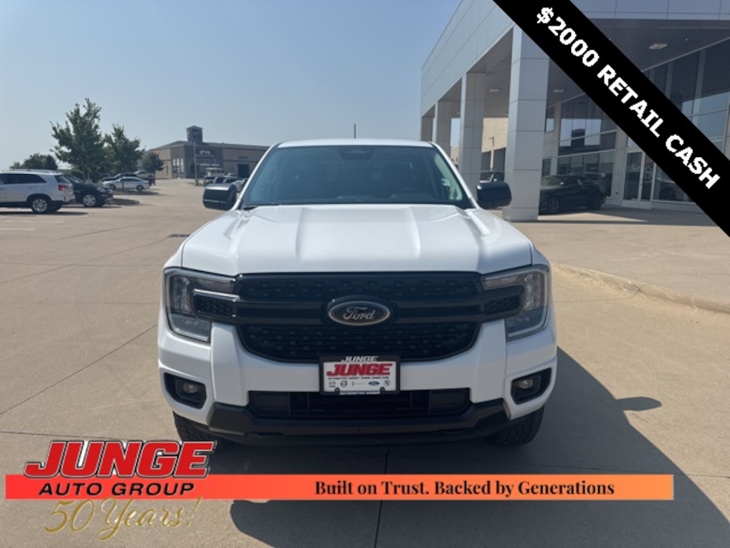 2025 Oxford White Ford Ranger **CREW CAB**, **4WD**, 4WD, 12" Display in Center Stack, 3.73 Axle Ratio, 4-Wheel Disc Brakes, 6 Speakers, ABS brakes, Air Conditioning, Alloy wheels, AM/FM radio: SiriusXM, AM/FM Stereo, Auto High-beam Headlights, Auto-dimming Rear-View mirror, Black Appearance Package, Black Center Bar & Surround Grille, Black Rear Bumper, Body-Color Painted Front Fascia, Brake assist, Cloth Front Bucket Seats, Cloth Front Heated Bucket Seats, Compass, Delay-off headlights, Driver door bin, Driver vanity mirror, Dual front impact airbags, Dual front side impact airbags, Dual-Zone Electronic Climate Control (DEATC), Electronic Stability Control, Emergency communication system: SYNC 4 911 Assist, Equipment Group 301A High, Front & Rear Black Ford Ovals, Front anti-roll bar, Front Bucket Seats, Front Center Armrest, Front fog lights, Front License Plate Bracket, Front reading lights, Front wheel independent suspension, Fully automatic headlights, Gray Painted Center Bar & Grille Surround, Gray Painted Front Fascia & Rear Bumper, Illuminated entry, Integrated Box Side Step, Leather Shift Knob, Low tire pressure warning, Navigation system: Connected Navigation, Occupant sensing airbag, Outside temperature display, Overhead airbag, Overhead console, Painted Body-Color Wheel Lip Molding, Panic alarm, Passenger vanity mirror, Power door mirrors, Power steering, Power windows, Power-Sliding Rear Window, Rear reading lights, Rear seat center armrest, Rear step bumper, Rear window defroster, Remote keyless entry, Security system, SiriusXM Satellite Radio, Speed control, Speed-sensing steering, Sport Appearance Package, Sport Box Decal, Steering wheel mounted audio controls, SYNC 4A w/Connected Navigation, Telescoping steering wheel, Tilt steering wheel, Traction control, Trip computer, Unique Carpet Mats, Variably intermittent wipers, Voltmeter, Wheels: 17" Gray-Painted Aluminum, Passenger door bin, 4WD, 12" Display in Center Stack, 3.73 Axle Ratio, 4-Wheel Disc Brakes, 6 Speakers, ABS brakes, Air Conditioning, Alloy wheels, AM/FM radio: SiriusXM, AM/FM Stereo, Auto High-beam Headlights, Auto-dimming Rear-View mirror, Black Appearance Package, Black Center Bar & Surround Grille, Black Rear Bumper, Body-Color Painted Front Fascia, Brake assist, Cloth Front Bucket Seats, Cloth Front Heated Bucket Seats, Compass, Delay-off headlights, Driver door bin, Driver vanity mirror, Dual front impact airbags, Dual front side impact airbags, Dual-Zone Electronic Climate Control (DEATC), Electronic Stability Control, Emergency communication system: SYNC 4 911 Assist, Equipment Group 301A High, Front & Rear Black Ford Ovals, Front anti-roll bar, Front Bucket Seats, Front Center Armrest, Front fog lights, Front License Plate Bracket, Front reading lights, Front wheel independent suspension, Fully automatic headlights, Gray Painted Center Bar & Grille Surround, Gray Painted Front Fascia & Rear Bumper, Illuminated entry, Integrated Box Side Step, Leather Shift Knob, Low tire pressure warning, Navigation system: Connected Navigation, Occupant sensing airbag, Outside temperature display, Overhead airbag, Overhead console, Painted Body-Color Wheel Lip Molding, Panic alarm, Passenger vanity mirror, Power door mirrors, Power steering, Power windows, Power-Sliding Rear Window, Rear reading lights, Rear seat center armrest, Rear step bumper, Rear window defroster, Remote keyless entry, Security system, SiriusXM Satellite Radio, Speed control, Speed-sensing steering, Sport Appearance Package, Sport Box Decal, Steering wheel mounted audio controls, SYNC 4A w/Connected Navigation, Telescoping steering wheel, Tilt steering wheel, Traction control, Trip computer, Unique Carpet Mats, Variably intermittent wipers, Voltmeter, Wheels: 17" Gray-Painted Aluminum.