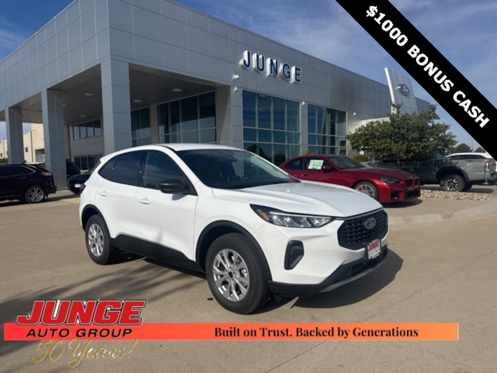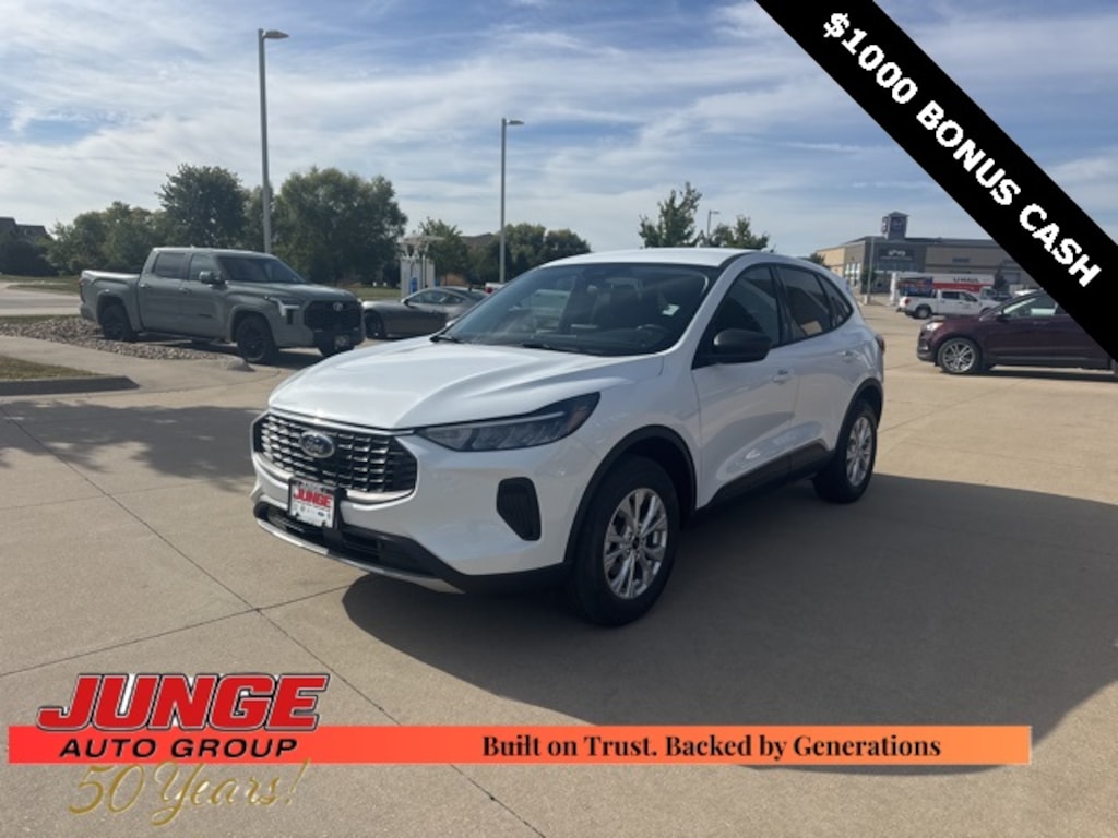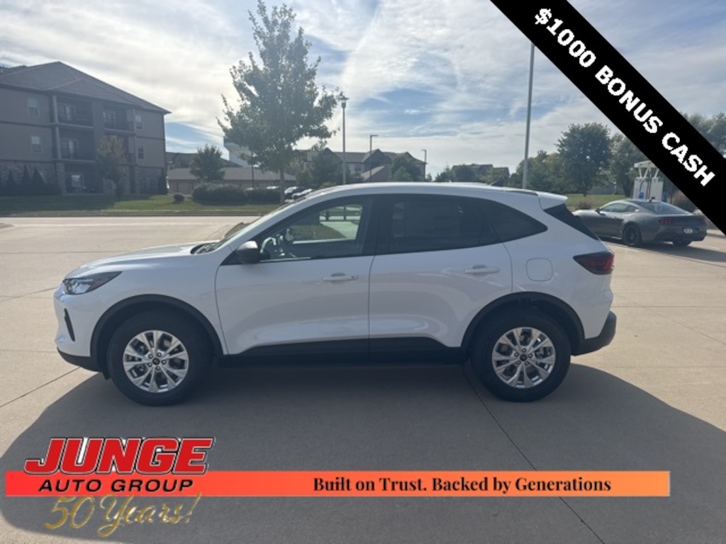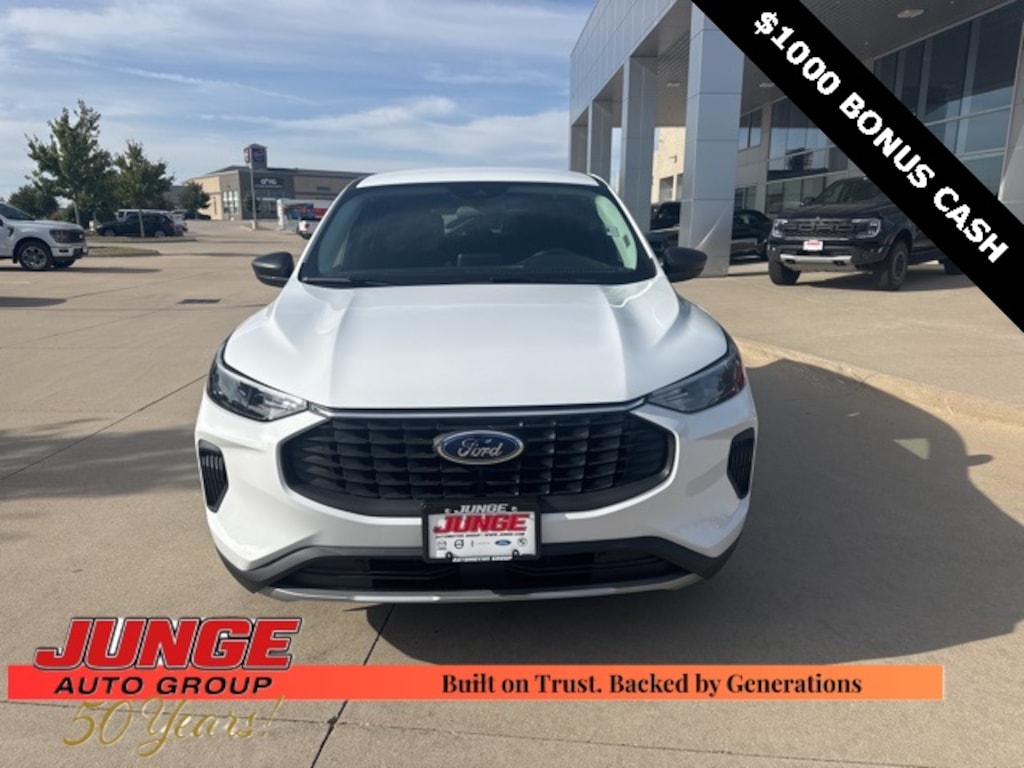 2026 Oxford White Ford Escape AWD, ABS brakes, Alloy wheels, Compass, Electronic Stability Control, Front dual zone A/C, Illuminated entry, Low tire pressure warning, Remote keyless entry, Traction control, 3.81 Axle Ratio, 4-Wheel Disc Brakes, 6 Speakers, Air Conditioning, AM/FM radio: SiriusXM, AM/FM Stereo, Auto High-beam Headlights, Automatic temperature control, Brake assist, Bumpers: body-color, Delay-off headlights, Driver door bin, Driver vanity mirror, Dual front impact airbags, Dual front side impact airbags, Emergency communication system: SYNC 4 911 Assist, Ford App, Four wheel independent suspension, Front anti-roll bar, Front Bucket Seats, Front Center Armrest, Front reading lights, Fully automatic headlights, Knee airbag, Occupant sensing airbag, Outside temperature display, Overhead airbag, Overhead console, Panic alarm, Passenger door bin, Passenger vanity mirror, Power door mirrors, Power steering, Power windows, Radio data system, Rear anti-roll bar, Rear reading lights, Rear seat center armrest, Rear window defroster, Rear window wiper, Speed control, Speed-sensing steering, Speed-Sensitive Wipers, Split folding rear seat, Spoiler, Steering wheel mounted audio controls, SYNC 4, Tachometer, Telescoping steering wheel, Tilt steering wheel, Trip computer, Unique Cloth Front Bucket Seats, Variably intermittent wipers, Wheels: 17" Shadow Silver-Painted Aluminum, AWD, ABS brakes, Alloy wheels, Compass, Electronic Stability Control, Front dual zone A/C, Illuminated entry, Low tire pressure warning, Remote keyless entry, Traction control.