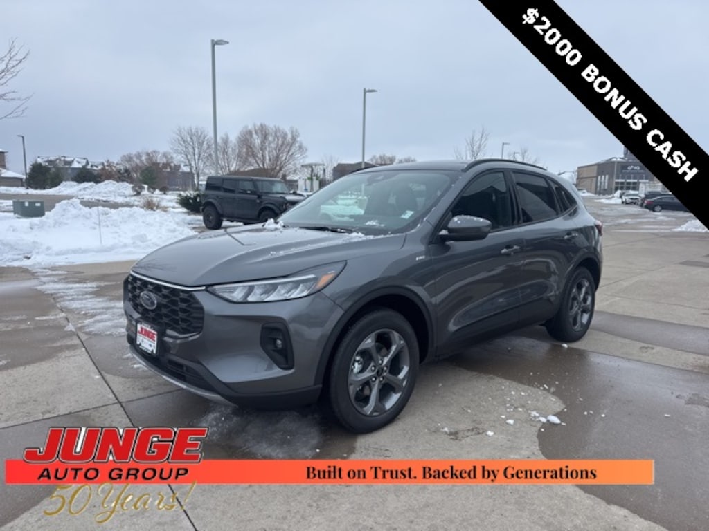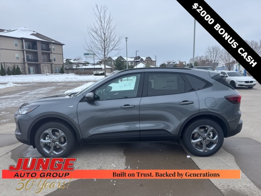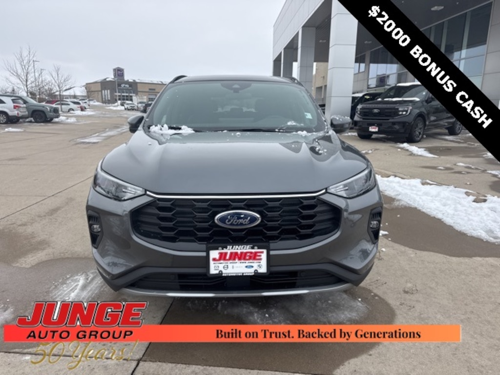 2026 carbonized gray metallic Ford Escape Hybrid *SUNROOF/MOONROOF*, **NAVIGATION/GPS**, **AWD**, 2.5L iVCT, 4-Wheel Disc Brakes, 6 Speakers, ABS brakes, Air Conditioning, Automatic temperature control, Black Roof-Rack Side Rails, Brake assist, Dual front impact airbags, Dual front side impact airbags, Electronic Fuel Door Release, Electronic Stability Control, Emergency communication system: SYNC 4 911 Assist, Equipment Group 400A, Ford App, Ford Co-Pilot360 Assist+, Four wheel independent suspension, Front anti-roll bar, Front dual zone A/C, Intersection Assist, Knee airbag, Low tire pressure warning, Neutral Towing Capability, Occupant sensing airbag, Overhead airbag, Panoramic Vista Roof, Pedestrian Alert Sounder, Power driver seat, Power Liftgate, Power steering, Power windows, Predictive Speed Assist, Radio data system, Rear anti-roll bar, Rear Parking Sensor, Rear window defroster, Remote keyless entry, Speed-sensing steering, Steering wheel mounted audio controls, SYNC 4, Tech Pack #1, Traction control, 2.91 Axle Ratio, Alloy wheels, Auto High-beam Headlights, Bumpers: body-color, Compass, Delay-off headlights, Driver door bin, Driver vanity mirror, Front Bucket Seats, Front Center Armrest, Front fog lights, Front License Plate Bracket, Front reading lights, Fully automatic headlights, Heated door mirrors, Heated front seats, Heated steering wheel, Illuminated entry, Outside temperature display, Overhead console, Panic alarm, Passenger door bin, Passenger vanity mirror, Power door mirrors, Rear reading lights, Rear seat center armrest, Rear window wiper, Speed control, Speed-Sensitive Wipers, Split folding rear seat, Spoiler, Sport steering wheel, Tachometer, Telescoping steering wheel, Tilt steering wheel, Trip computer, Variably intermittent wipers, Wheels: 18" Rock Metallic Painted Aluminum, 2.5L iVCT, 4-Wheel Disc Brakes, 6 Speakers, ABS brakes, Air Conditioning, Automatic temperature control, Black Roof-Rack Side Rails, Brake assist, Dual front impact airbags, Dual front side impact airbags, Electronic Fuel Door Release, Electronic Stability Control, Emergency communication system: SYNC 4 911 Assist, Equipment Group 400A, Ford App, Ford Co-Pilot360 Assist+, Four wheel independent suspension, Front anti-roll bar, Front dual zone A/C, Intersection Assist, Knee airbag, Low tire pressure warning, Neutral Towing Capability, Occupant sensing airbag, Overhead airbag, Panoramic Vista Roof, Pedestrian Alert Sounder, Power driver seat, Power Liftgate, Power steering, Power windows, Predictive Speed Assist, Radio data system, Rear anti-roll bar, Rear Parking Sensor, Rear window defroster, Remote keyless entry, Speed-sensing steering, Steering wheel mounted audio controls, SYNC 4, Tech Pack #1, Traction control.