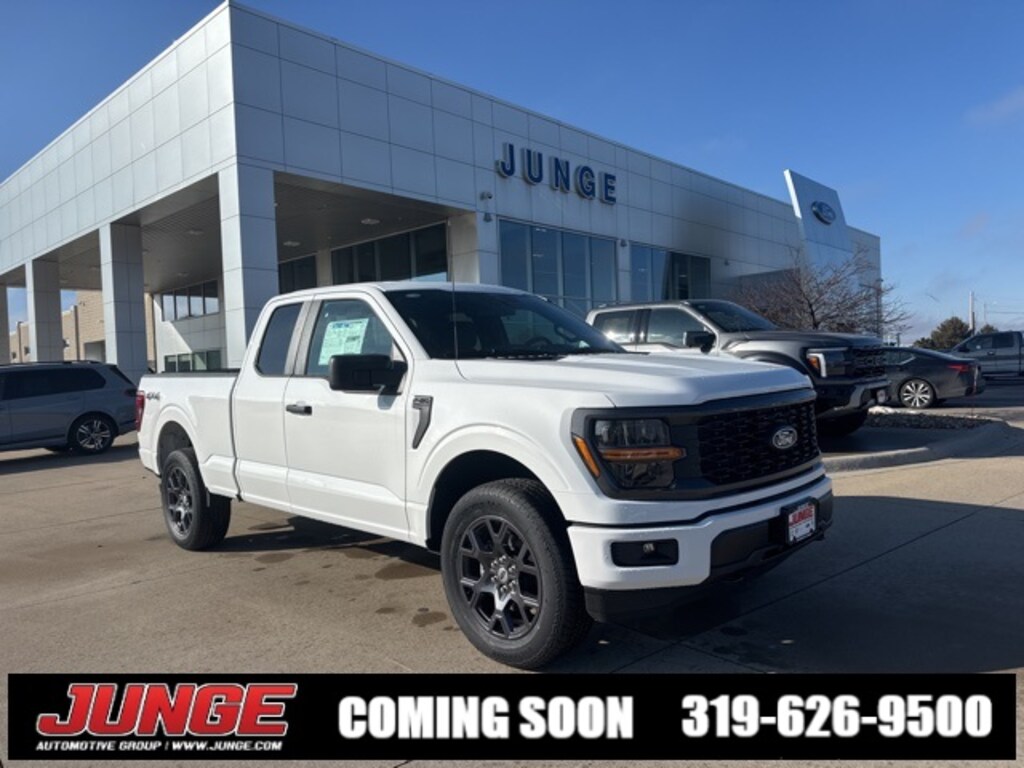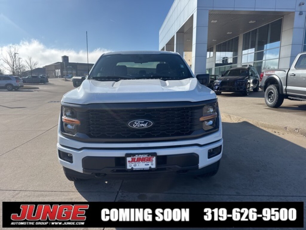 2026 Oxford White Ford F-150 **4WD**, 4WD, 12" Cluster Display, 3.55 Axle Ratio, 4-Wheel Disc Brakes, 6 Speakers, ABS brakes, Air Conditioning, Alloy wheels, AM/FM radio: SiriusXM with 360L, Auto High-beam Headlights, Brake assist, Bumpers: body-color, Compass, Delay-off headlights, Driver door bin, Dual front impact airbags, Dual front side impact airbags, Electronic Stability Control, Emergency communication system: SYNC 4 911 Assist, Equipment Group 200A Mid, Ford Connectivity Package (1-Year Included), Front anti-roll bar, Front Bucket Seats, Front Center Armrest, Front License Plate Bracket, Front reading lights, Front wheel independent suspension, Fully automatic headlights, GVWR: 6,550 lbs Payload Package, Heated door mirrors, Illuminated entry, Internet access capable: 5G Modem - Ford Connectivity Package, LED Fog Lamps with LED Cornering Lamp, Low tire pressure warning, Occupant sensing airbag, Outside temperature display, Overhead airbag, Overhead console, Panic alarm, Passenger door bin, Passenger vanity mirror, Power door mirrors, Power steering, Power windows, Radio data system, Radio: AM/FM Stereo with SiriusXM 360L, Rear Parking Sensors, Rear step bumper, Rear window defroster, Remote keyless entry, Security system, Speed control, Split folding rear seat, Steering wheel mounted audio controls, SYNC 4 with Enhanced Voice Recognition, Tachometer, Telescoping steering wheel, Tilt steering wheel, Traction control, Trip computer, Unique Sport Cloth 40/Console/40 Front-Seats, Variably intermittent wipers, Wheels: 20" Dark Gray Aluminum, 4WD, 12" Cluster Display, 3.55 Axle Ratio, 4-Wheel Disc Brakes, 6 Speakers, ABS brakes, Air Conditioning, Alloy wheels, AM/FM radio: SiriusXM with 360L, Auto High-beam Headlights, Brake assist, Bumpers: body-color, Compass, Delay-off headlights, Driver door bin, Dual front impact airbags, Dual front side impact airbags, Electronic Stability Control, Emergency communication system: SYNC 4 911 Assist, Equipment Group 200A Mid, Ford Connectivity Package (1-Year Included), Front anti-roll bar, Front Bucket Seats, Front Center Armrest, Front License Plate Bracket, Front reading lights, Front wheel independent suspension, Fully automatic headlights, GVWR: 6,550 lbs Payload Package, Heated door mirrors, Illuminated entry, Internet access capable: 5G Modem - Ford Connectivity Package, LED Fog Lamps with LED Cornering Lamp, Low tire pressure warning, Occupant sensing airbag, Outside temperature display, Overhead airbag, Overhead console, Panic alarm, Passenger door bin, Passenger vanity mirror, Power door mirrors, Power steering, Power windows, Radio data system, Radio: AM/FM Stereo with SiriusXM 360L, Rear Parking Sensors, Rear step bumper, Rear window defroster, Remote keyless entry, Security system, Speed control, Split folding rear seat, Steering wheel mounted audio controls, SYNC 4 with Enhanced Voice Recognition, Tachometer, Telescoping steering wheel, Tilt steering wheel, Traction control, Trip computer, Unique Sport Cloth 40/Console/40 Front-Seats, Variably intermittent wipers, Wheels: 20" Dark Gray Aluminum.