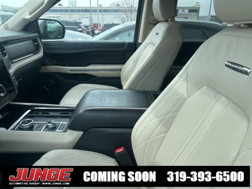 Platinum 4WD 10-Speed Automatic 4WD, 1st & 2nd Row Floor Liners w/Carpet Mats, 22 Speakers, 3.31 Axle Ratio, 3rd row seats: split-bench, 4-Wheel Disc Brakes, ABS brakes, Adaptive suspension, Adjustable pedals, Air Conditioning, Alloy wheels, AM/FM radio: SiriusXM with 360L, Auto High-beam Headlights, Auto-dimming door mirrors, Auto-dimming Rear-View mirror, Automatic temperature control, Brake assist, Bumpers: body-color, Compass, Delay-off headlights, Driver door bin, Driver vanity mirror, Dual front impact airbags, Dual front side impact airbags, Electronic Stability Control, Emergency communication system: SYNC 4 911 Assist, Equipment Group 600A Standard Package, Exterior Parking Camera Rear, Four wheel independent suspension, Front anti-roll bar, Front Bucket Seats, Front Center Armrest, Front dual zone A/C, Front fog lights, Front License Plate Bracket, Front reading lights, Fully automatic headlights, Garage door transmitter, Genuine wood console insert, Genuine wood dashboard insert, Genuine wood door panel insert, Heated door mirrors, Heated front seats, Heated rear seats, Heated steering wheel, Heated/Ventilated Prem Lthr Front Captain's Chairs, Illuminated entry, Leather steering wheel, Low tire pressure warning, Memory seat, Navigation system: Connected Navigation, Occupant sensing airbag, Outside temperature display, Overhead airbag, Overhead console, Panic alarm, Passenger door bin, Passenger vanity mirror, Pedal memory, Power door mirrors, Power driver seat, Power Liftgate, Power moonroof, Power passenger seat, Power steering, Power windows, Radio data system, Radio: B&O Unleashed Sound System by Bang & Olufsen, Rain sensing wipers, Rear air conditioning, Rear anti-roll bar, Rear audio controls, Rear reading lights, Rear window defroster, Rear window wiper, Reclining 3rd row seat, Remote keyless entry, Security system, SiriusXM w/360L, Speed control, Speed-sensing steering, Speed-Sensitive Wipers, Split folding rear seat, Spoiler, Steering wheel memory, Steering wheel mounted audio controls, SYNC 4 w/Enhanced Voice Recognition, Tachometer, Telescoping steering wheel, Tilt steering wheel, Traction control, Trip computer, Turn signal indicator mirrors, Variably intermittent wipers, Ventilated front seats, Voltmeter, Wheels: 22" 12-Spoke Polished Aluminum, 4WD.
