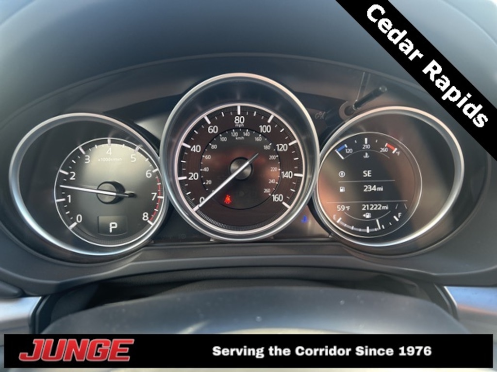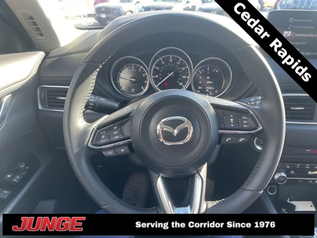 2.5 S Select Package AWD 6-Speed Automatic 4-Wheel Disc Brakes, 4.624 Axle Ratio, 6 Speakers, ABS brakes, Air Conditioning, Alloy wheels, AM/FM radio, AppLink/Apple CarPlay and Android Auto, Auto High-beam Headlights, Automatic temperature control, Brake assist, Bumpers: body-color, Cargo Mat, Delay-off headlights, Driver door bin, Driver vanity mirror, Dual front impact airbags, Dual front side impact airbags, E911 Automatic Emergency Notification, Electronic Stability Control, Emergency communication system: MAZDA CONNECT, Exterior Parking Camera Rear, Four wheel independent suspension, Front & Rear Splash Guards, Front anti-roll bar, Front Bucket Seats, Front Center Armrest w/Storage, Front dual zone A/C, Front reading lights, Fully automatic headlights, Heated Front Bucket Seats, Heated front seats, Illuminated entry, Infotainment System Voice Command, Leather Shift Knob, Leather steering wheel, Leatherette Seat Trim, Low tire pressure warning, Multifunction Commander Control, Occupant sensing airbag, Outside temperature display, Overhead airbag, Overhead console, Pandora, Panic alarm, Passenger door bin, Passenger vanity mirror, Power door mirrors, Power driver seat, Power steering, Power windows, Radio Broadcast Data System Program Information, Radio data system, Radio: AM/FM/HD Audio System, Rain sensing wipers, Rear anti-roll bar, Rear Bumper Guard, Rear reading lights, Rear seat center armrest, Rear window defroster, Rear window wiper, Remote keyless entry, SMS Text Msg Audio Delivery & Reply, Speed control, Speed-sensing steering, Split folding rear seat, Spoiler, Steering wheel mounted audio controls, Tachometer, Telescoping steering wheel, Tilt steering wheel, Traction control, Trip computer, Turn signal indicator mirrors, Variably intermittent wipers, Wheel Locks, Wheels: 17" x 7J Aluminum Alloy.
